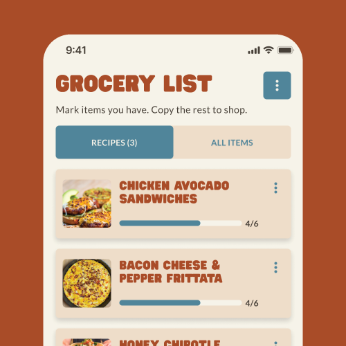Step-by-step cooking mode, smart grocery lists, portion control, and all your favorite recipes in one place.